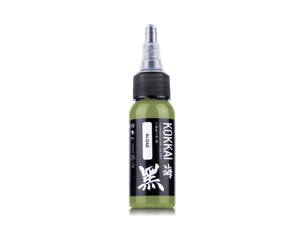 Algae van Kokkai Sumi Inks combineren eeuwenoude Japanse tradities van sumi-inktproductie met moderne technieken voor tatoeage-inkt. Dit unieke pigment levert een rijke, natuurlijke groene tint en biedt tatoeëerders de mogelijkheid om dynamische schaduwen en levendige kleuranvragen te creëren.