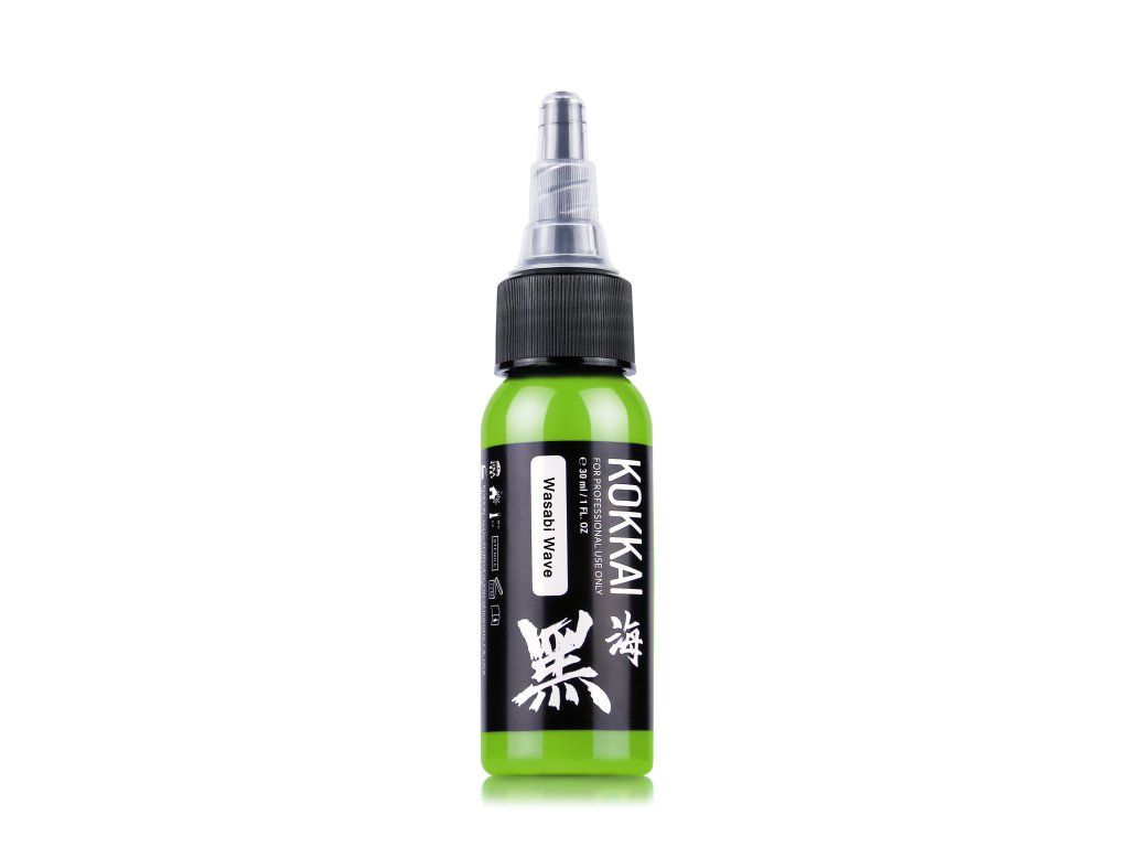 Wasabi Wave tattoo-inkt van Kokkai Sumi Inks combineert traditionele Japanse sumi-inktproductietechnieken met moderne tattoo-inktproductie, wat resulteert in een levendig groen pigment dat opvalt in elk ontwerp. Deze inkt, geïnspireerd op de gedurfde, frisse tinten van wasabi, levert een rijke kleur met een uitzonderlijke consistentie en een soepele applicatie.