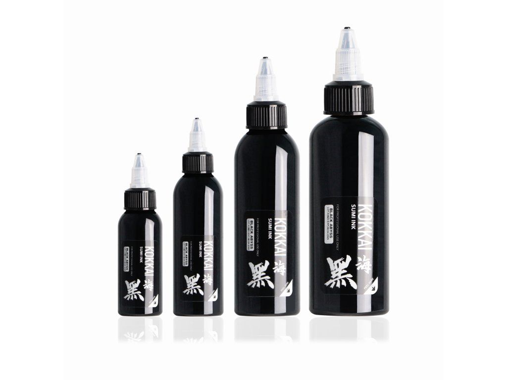 Black Abyss tattoo-ink van Kokkai Sumi Inks combineert beproefde technieken van traditionele Japanse sumi-inktproductie met moderne tattoo-inktproductie, wat resulteert in een pigment dat zowel diepte als precisie biedt.