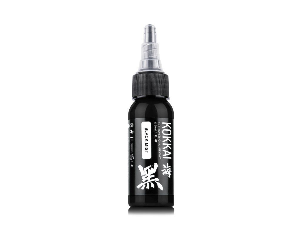 Black Mist Tattoo inkt van Kokkai Sumi Inks combineert eeuwenoude Japanse sumi-inktproductietechnieken met moderne tatoeage-inktproductie, wat resulteert in een veelzijdige, medium-body zwarte kleur, ideaal voor zowel lijnen als schaduwen met subtiele tot gedurfde effecten.