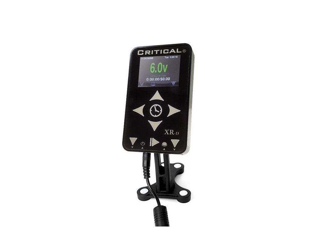 Nieuw volledig kleurendisplay met aanpasbare kleurenschema's en grote letters voor gemakkelijke leesbaarheid Nieuwe hoogwaardige aluminium behuizing Nieuw verfijnde touchbediening Ingebouwde oscilloscoop voor gedetailleerde instelling van spoelmachines Nieuwe manier van bevestigen van de voeding voor meer flexibiliteit Jump start voor machines zoals Cheyenne Nieuwe hoogwaardige connectoren voor een lange levensduur en maximale stroomoverdracht Dubbele uitgangen voor twee machines 4 ampère maximum, 2 ampère constante spanning Sessiemeter gebaseerd op door de gebruiker ingesteld uurtarief: sessiemodus, looptijdmodus of hybride modus (nieuwe "Hybride" facturatiemodus automatiseert gebruikersinvoer) Pedaal override - mogelijkheid om zonder pedaal te werken Precisie-instelling van de spanning 0-18V Ingebouwde kortsluitbeveiliging instelstappen per 0.1V Klok Opslaan van instellingen voor 2, 4 of 6 machines Ingebouwd geheugen Universele ingangsspanning 90-240vac 50/60hz Aansluiting op standaard 1/4'' clipcord en pedaal Volts, Ampères, Snelheid (hz), Duty cycle (%), STL 2 jaar garantie In de verpakking vindt u: XR-D voeding, magnetische houder, voedingskabel en voedingsadapter Gemaakt in de VS Hoe te video