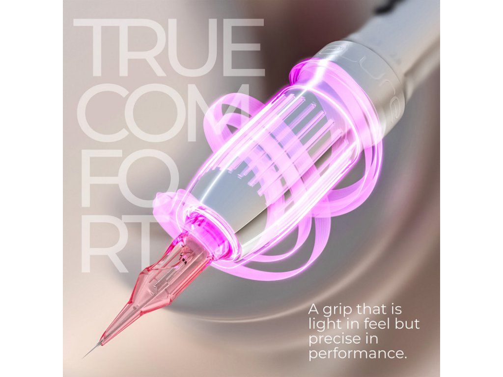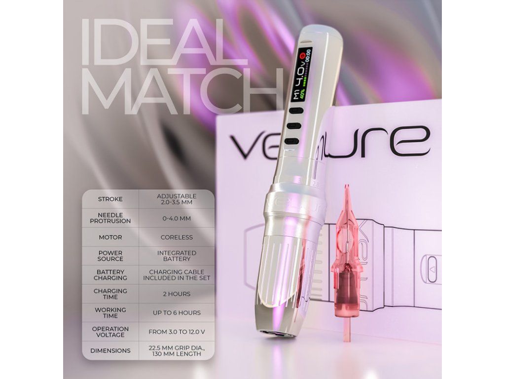 KWADRON PMU Velure is een professionele draadloze machine ontworpen voor permanente make-up. Het combineert een compact ontwerp, een laag gewicht en een soepele werking voor maximale controle over de implantatiediepte van pigment en de intensiteit van het werk. Dankzij de instelbare slag is hij geschikt voor verschillende PMU-technieken en verschillende huidtypen.