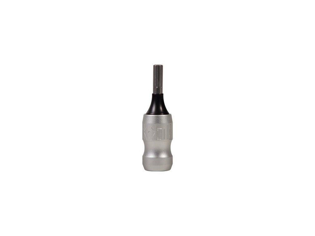 De Grip Click Click V2 van Lauro Paolini is een verstelbare aluminium grip voor cartridges. U kunt de naald diepte eenvoudig aanpassen door aan de grip te draaien. Dankzij de ergonomische vorm maakt het langdurig werken zonder vermoeidheid mogelijk. Deze grip is compatibel met de meeste grote cartridge fabrikanten en kan zowel in roterende als spoelmachines worden gebruikt.