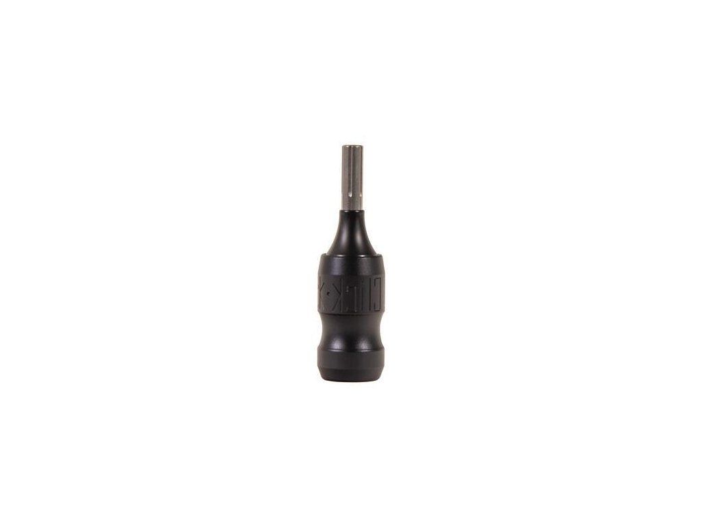 De Grip Click Click V2 van Lauro Paolini is een verstelbare aluminium grip voor cartridges. U kunt de naald diepte eenvoudig aanpassen door aan de grip te draaien. Dankzij de ergonomische vorm maakt het langdurig werken zonder vermoeidheid mogelijk. Deze grip is compatibel met de meeste grote cartridge fabrikanten en kan zowel in roterende als spoelmachines worden gebruikt.