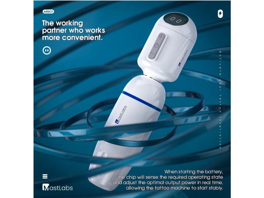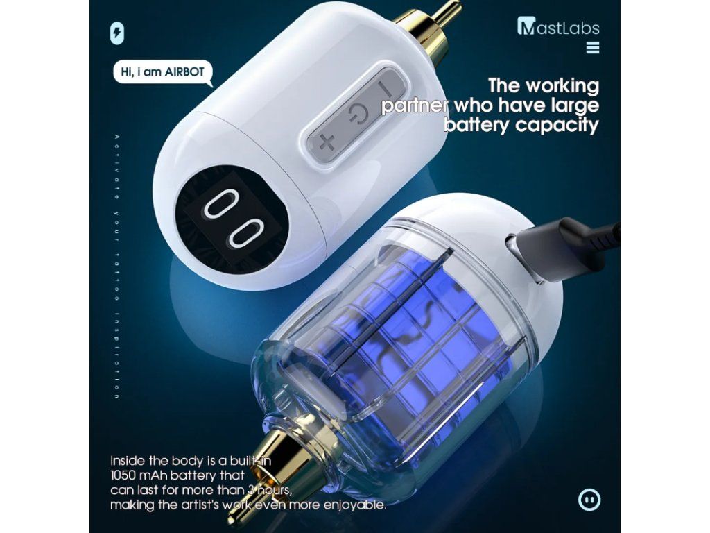 - Ingebouwde Mastlabs-chip met Super-Sense cognitieve functie, die een nieuw tijdperk van tatoeagemachinebatterijen inluidt. Gemaakt van hoogwaardig PC-materiaal met superieure afwerking, dat bestand is tegen vallen vanaf grote hoogtes. Bij het in- en uitschakelen van de airbot worden levendige en interessante interactieve emoticons weergegeven.