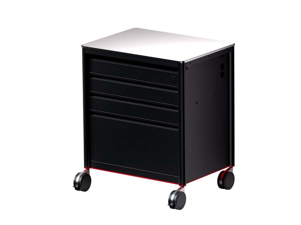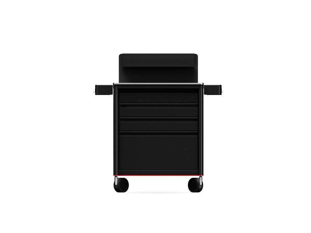 De ladegeleiders hebben nu een vergrendelingssysteem dat voorkomt dat de lades openen tijdens het verplaatsen van de werkstation. De artiest kan META 2.0 volledig vrij bewegen zonder dat de lades bewegen of openen.