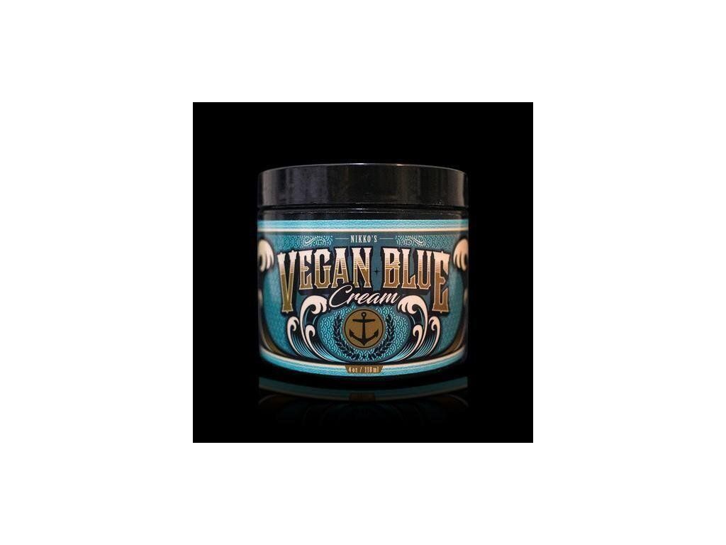 Vegan Blue is een huidverzorgingsproduct dat meer dan twee jaar is ontwikkeld en getest door tattoo-artiesten. Bevat natuurlijke ingrediënten en is geweldig voor het versnellen van de genezing van de getatoeëerde huid. Het hoofdingrediënt is Indiase saffraan (kurkuma), die helpt ontstekingen te voorkomen en in combinatie met vitamines uit zonnebloemolie en antibacteriële jojobaolie helpt bij het versnellen van de genezing.