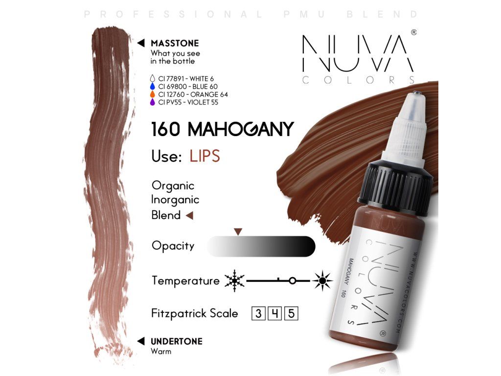 NUVA COLORS pigmenten zorgen voor rijke en langdurige effecten. Kies uit zes pigmentensets, speciaal geselecteerd voor verschillende pigmentatiegebieden, waaronder lippen, wenkbrauwen, oogleden, areola's, littekens en hoofdhuid. NUVA COLORS zorgt elke keer voor een soepele en uniforme applicatie.