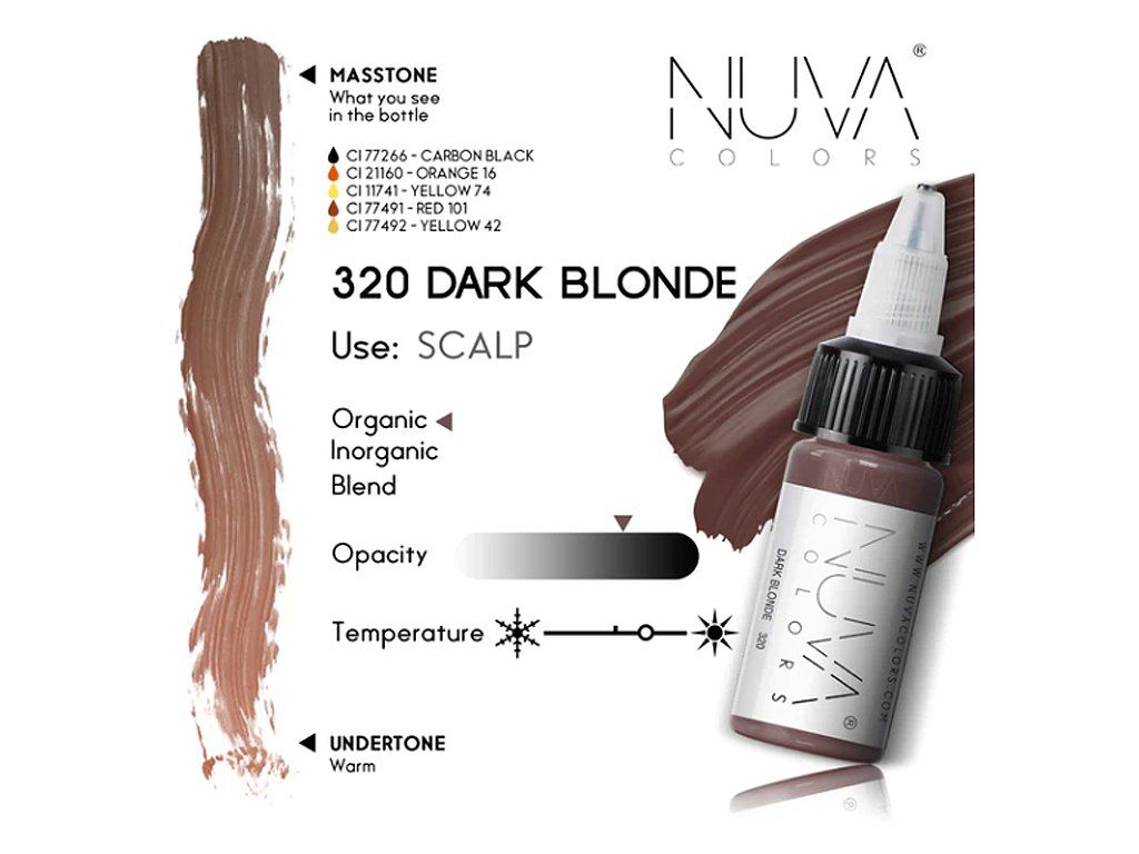 NUVA COLORS pigmenten zorgen voor rijke en langdurige effecten. Kies uit zes pigmentensets, speciaal geselecteerd voor verschillende pigmentatiegebieden, waaronder lippen, wenkbrauwen, oogleden, areola's, littekens en hoofdhuid. NUVA COLORS zorgt elke keer voor een soepele en uniforme applicatie.