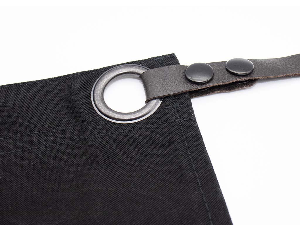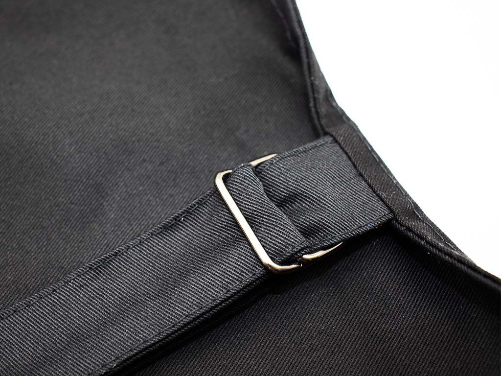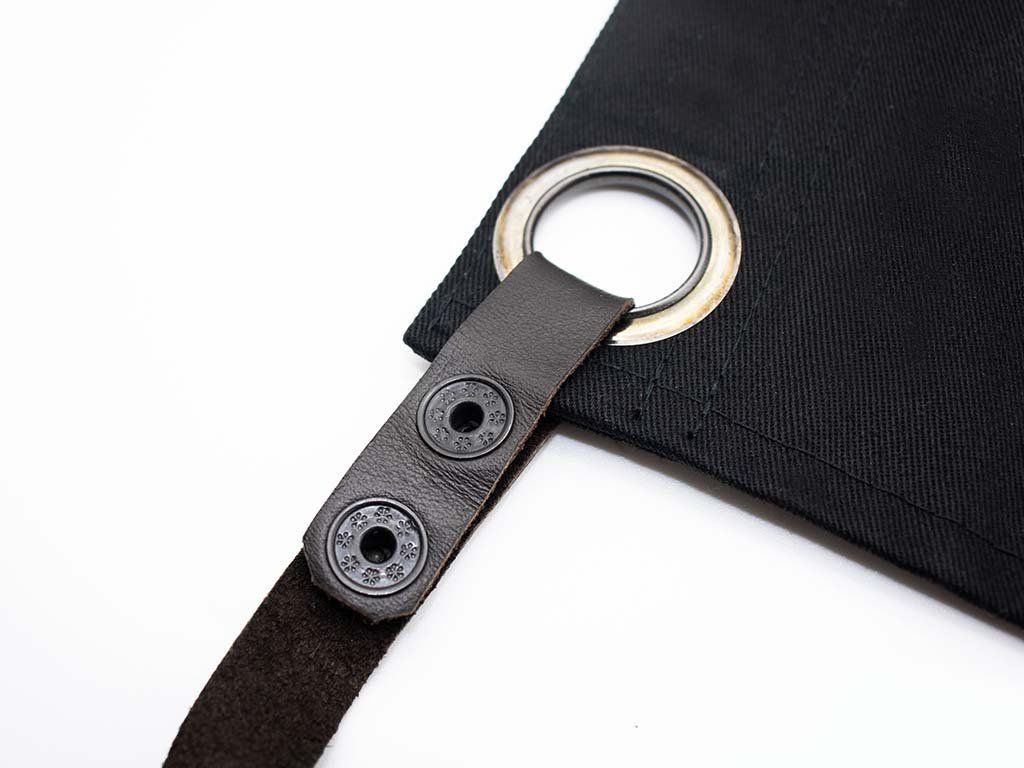 Een belangrijk onderdeel zijn ook de hoogwaardige afneembare leren bandjes, die comfort en eenvoudige maataanpassing garanderen. Bovendien heeft de nanobehandeling geen invloed op het ademend vermogen van het schort.