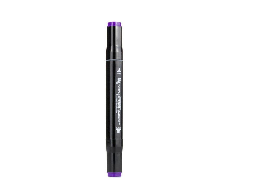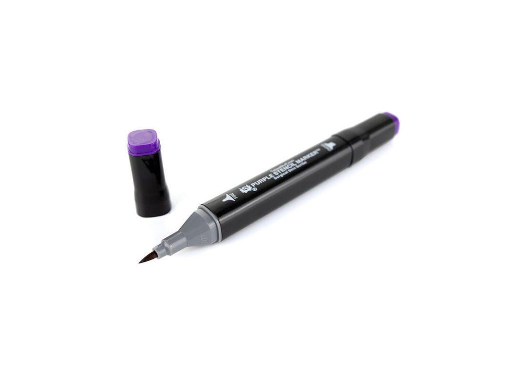 Het nieuwe en verbeterde Stencil Stuff purple Stencil Marker is terug! Volgens het motto 'twee is beter dan één' is deze marker uitgerust met twee punten die gebruikt kunnen worden voor fijne details of het inkleuren van grotere huidoppervlakken. De penseelpunt van de Purple Stencil Marker is ideaal voor fijne details en het schetsen op de huid. De brede punt van de marker kan worden gebruikt om grotere gebieden in te vullen. Het is ideaal voor grove schetsen en vrij handmatig tekenen van geometrische vormen of patronen, zelfs dikke lijnen. gemaakt voor gebruik op de huid