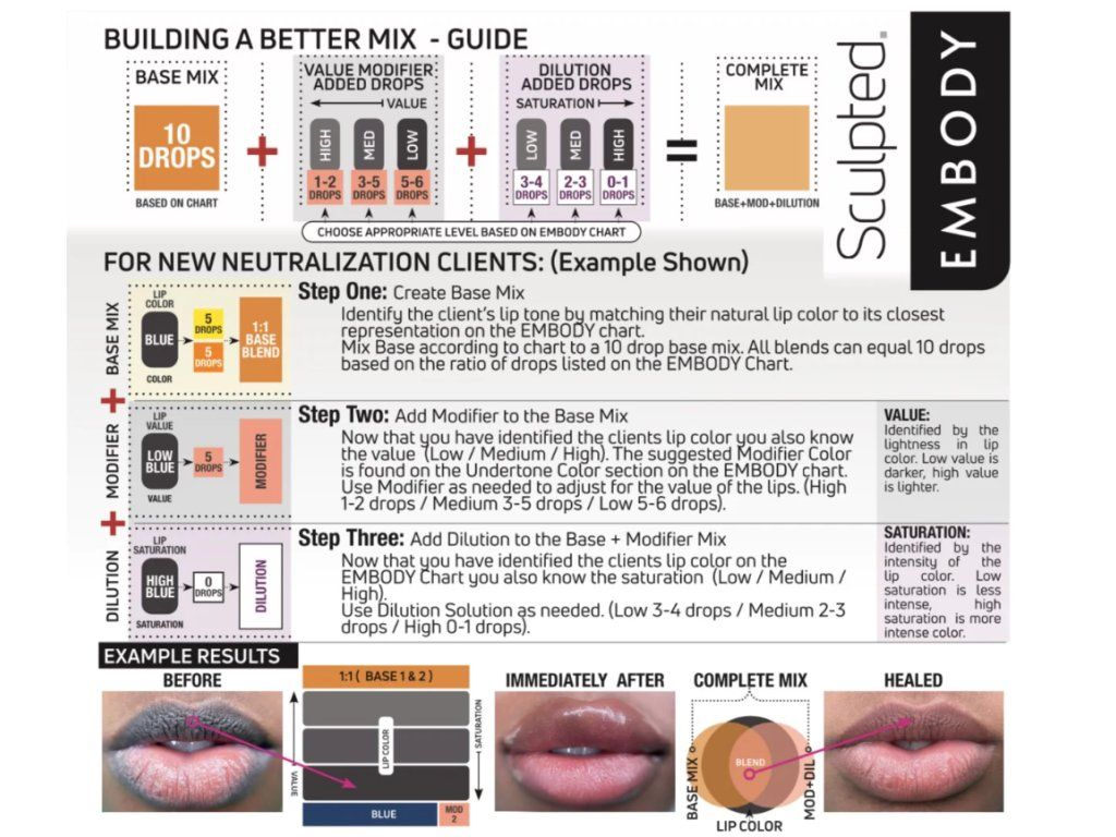 *Gebruik alleen om individuele pigmenten uit de Embody Set + Enhance Set van Carla Ricciardone aan te vullen om de beste resultaten te bereiken bij het cosmetisch accentueren en neutraliseren van getatoeëerde lippen.