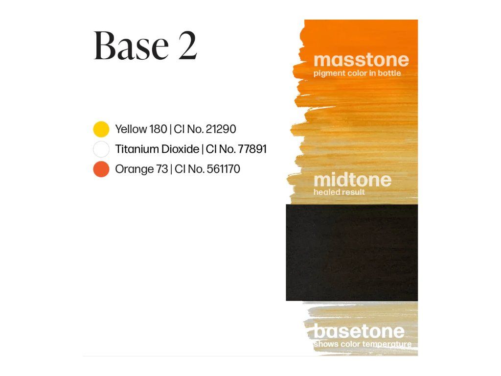Base 2 is een neutrale oranje, die titaandioxide bevat voor maximale dekking en de nodige correctie. Deze formulering is bedoeld om te verdunnen en moet worden gecombineerd met Embody Set Mods 1-3 of een schaduwoplossing.