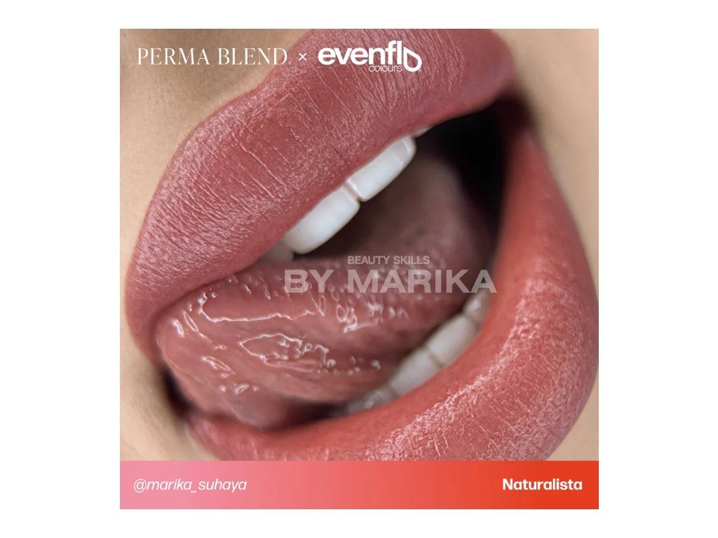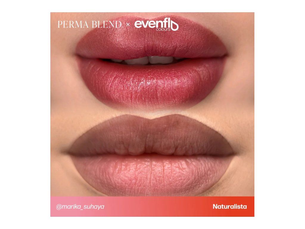 De tint komt uit de set PERMA BLEND LUXE - Evenflo PMU Ink - True Lips Set 6 x 15ml, die een perfecte keuze zijn voor technieken Lip Brush of Lipstick. U vindt er 6 kleurenpaletten, variërend van donker, medium en lichtroze tot natuurlijk paars tinten.