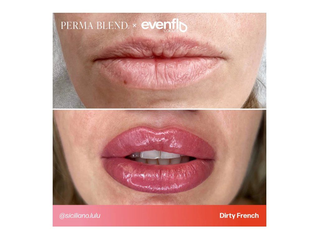De tint komt uit de set PERMA BLEND LUXE - Evenflo PMU Ink - True Lips Set 6 x 15ml, die een perfecte keuze zijn voor technieken Lip Brush of Lipstick. Je vindt er 6 kleuropties in, van donker, medium en lichtroze tot natuurlijke paarse tinten.