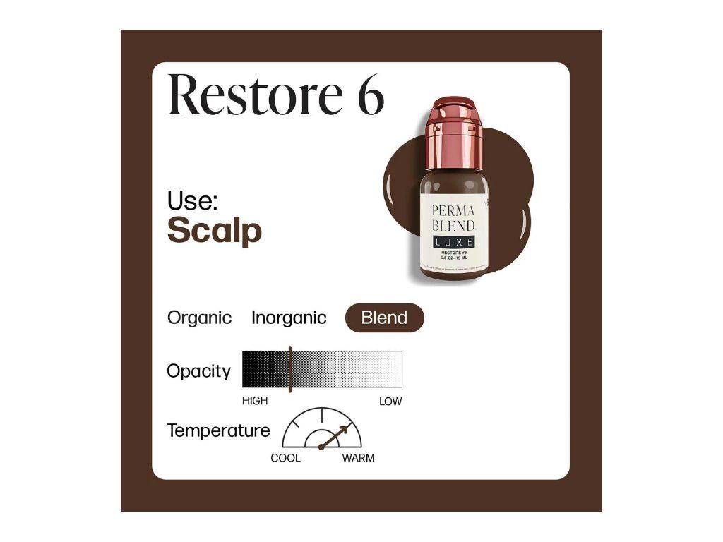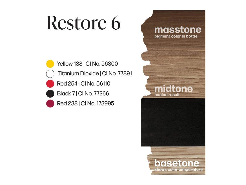 Restore 6 is een licht warme, chocoladebruine kleur die haarzakjes nabootst. *Het wordt het best gebruikt als aanvulling op de Restore-set.
