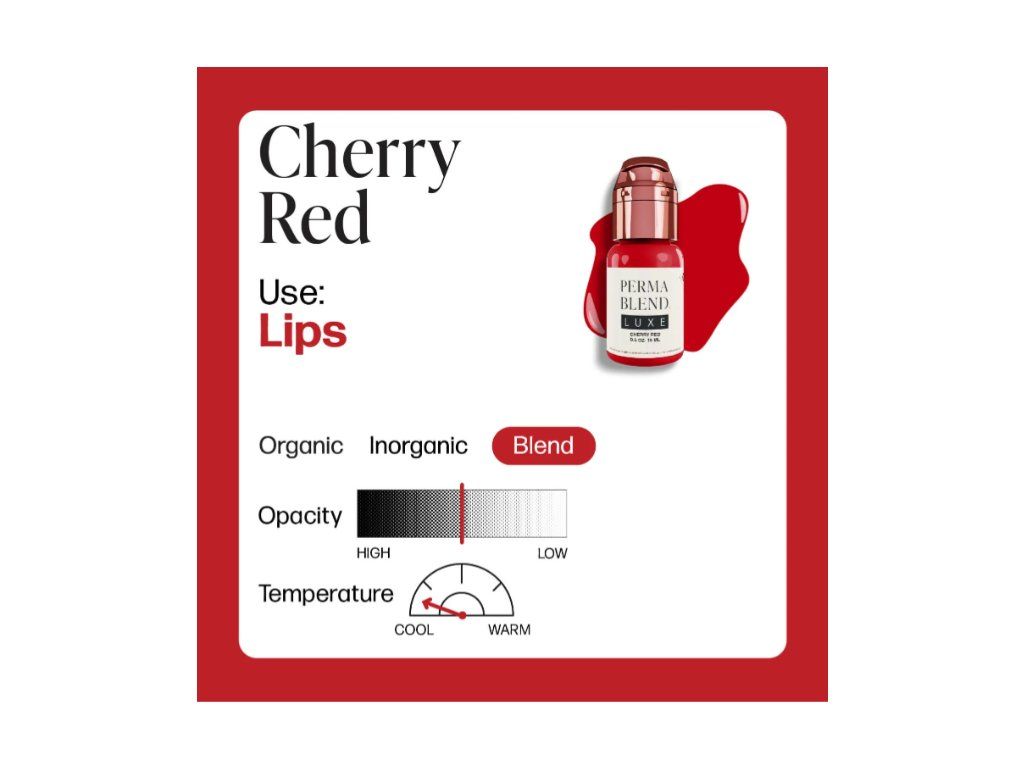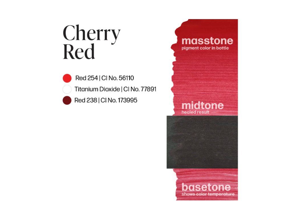 Dieper rood dat vergelijkbaar is met de kleur van kersen. Medium rode kleur met gemiddelde dekking en een koele ondertoon.