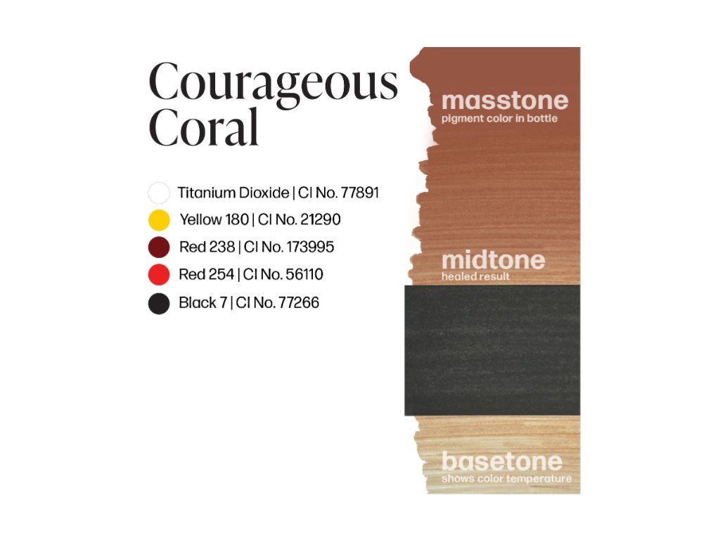 Moedig Koraal - Een mat, roze tot donkerdere tint met een hoge dekking die een sterke basis biedt voor een medium, donkerroze halo. Aanbevolen voor de basis van de halo.