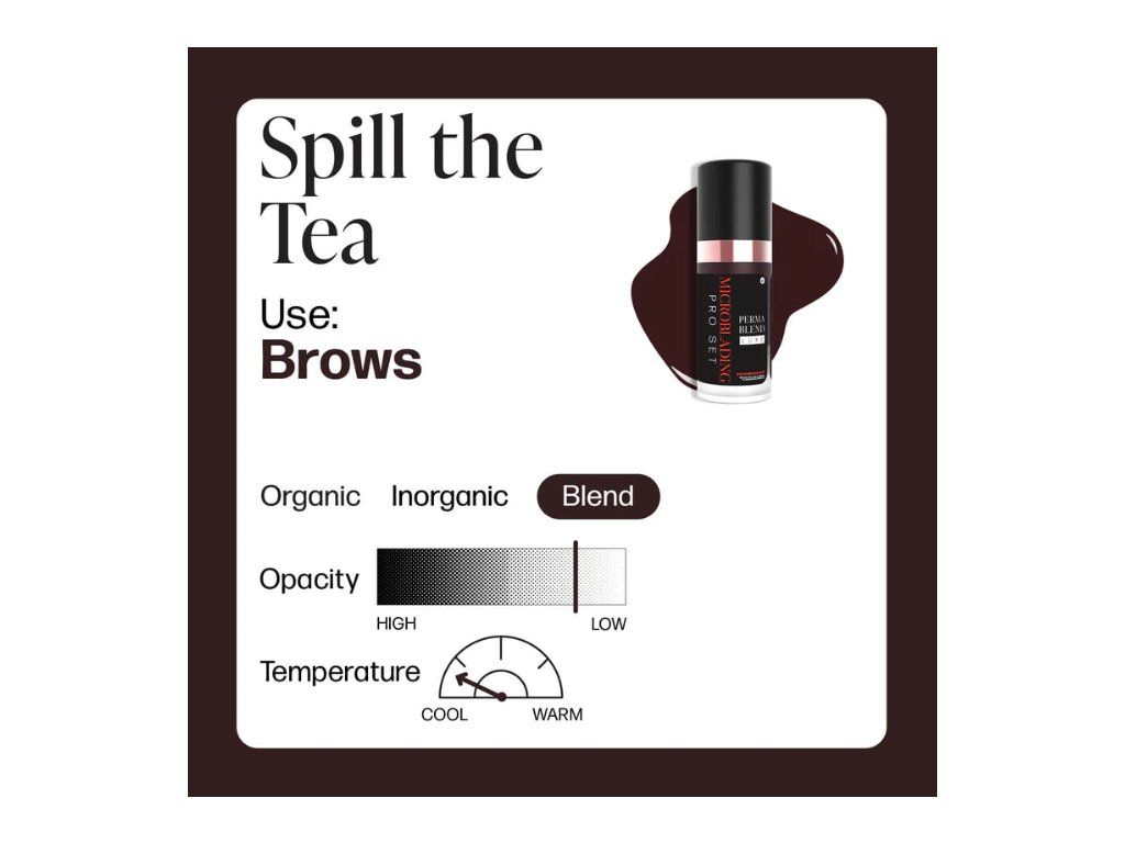 Spill The Tea - Dit pigment voor microblading biedt een medium bruine kleur met een sappige schep koel rood, ideaal voor klanten die verlangen naar een subtiele thee.