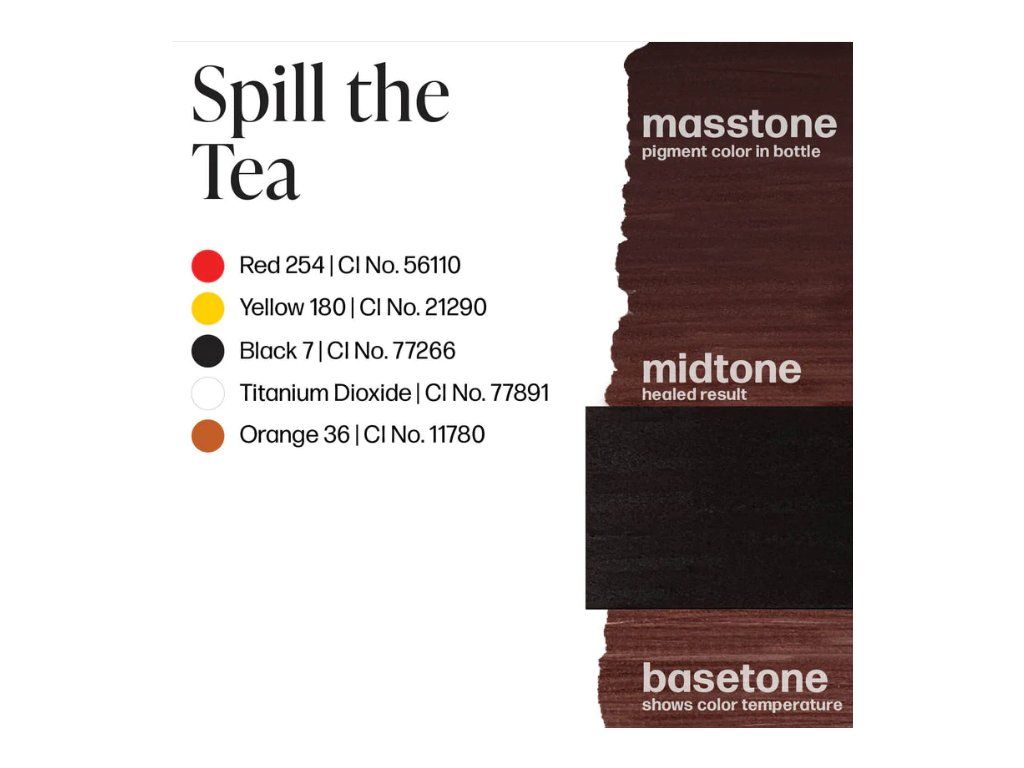 Spill the Tea is een donkerdere versie van Have Your Cake, die zorgt voor een ideaal pigment voor medium tot donkerbruin. Denk aan 70% cacaorepen en zwarte thee. Om specifieke tinten te perfectioneren, gebruik je Clay All Day om op te warmen of Glow Up om naar behoefte te verlichten.