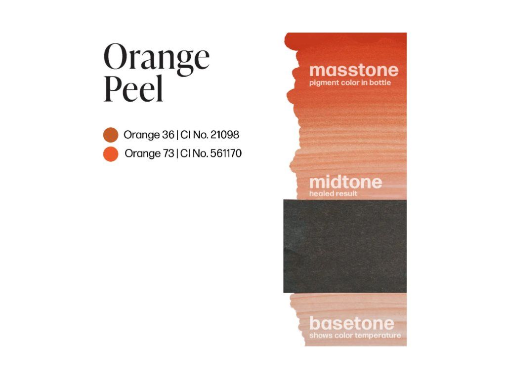 Oranje corrector, die geen titaniumdioxide bevat, geschikt voor het neutraliseren van blauw of grijs, verwarmt kleuren door toevoeging aan andere tinten. Bevat geen TI02.