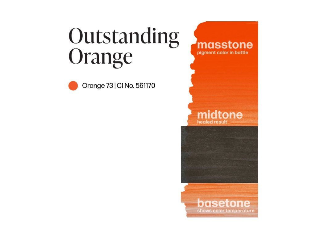 Uitmuntend Oranje Duidelijk oranje kleur met zeer uitgesproken warme ondertonen. Wordt het best gebruikt als een kleurmodificator om de exacte juiste tint te verkrijgen.