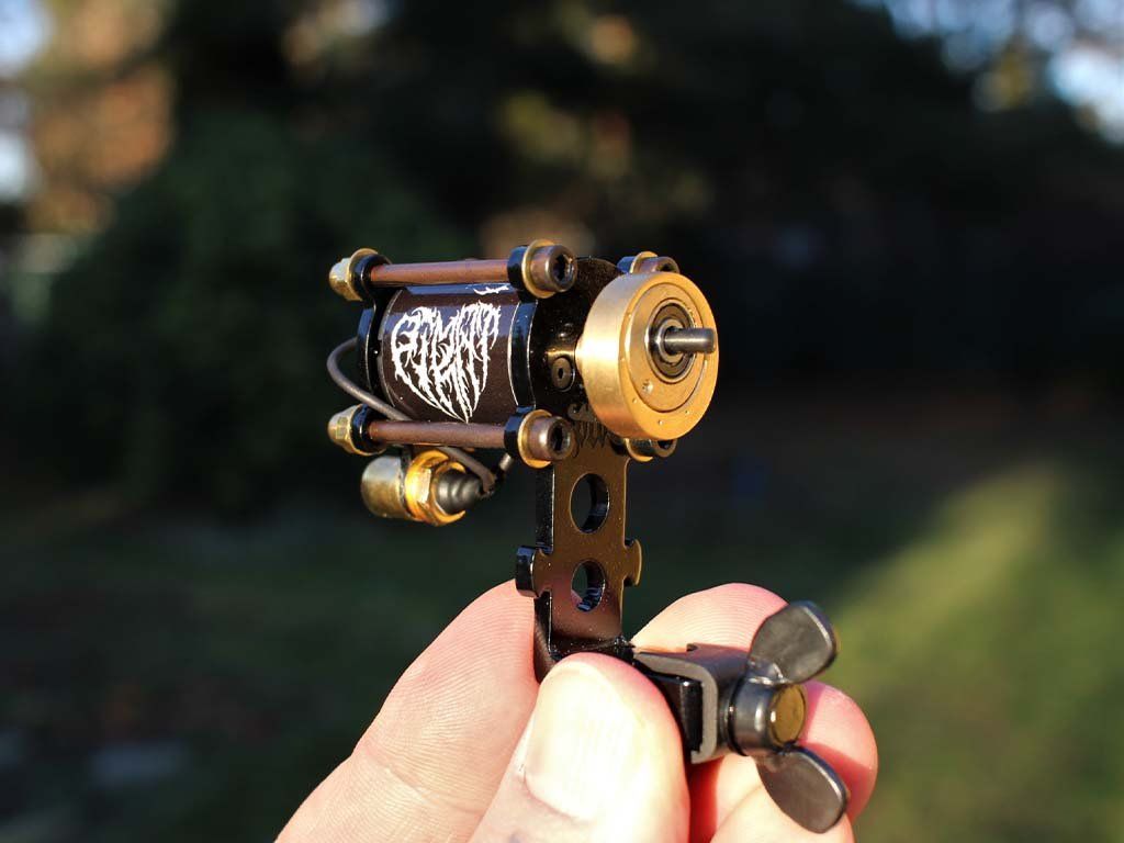 Krachtige universele direct drive roterende machine met een hoogwaardige 8,5W Faulhaber motor voor alle soorten werk en naalden. Duidelijke snelheidsregeling van 6 tot 12V (1Volt = 10Hz). Keuze uit RCA-aansluiting of klassieke clipcord. Standaardversie met een slag van 3,5 mm. Ook verkrijgbaar met variabele slag van 1 - 5 mm. Metalen behuizing in vele verschillende kleuren - zwart, rood, oranje, blauw, turquoise, paars, wit, vintage, etc. Gewicht 118g. Vermeld het nummer van de gekozen motorsticker in de opmerkingen, de huidige lijst met opties staat in het midden van het album met grinders.