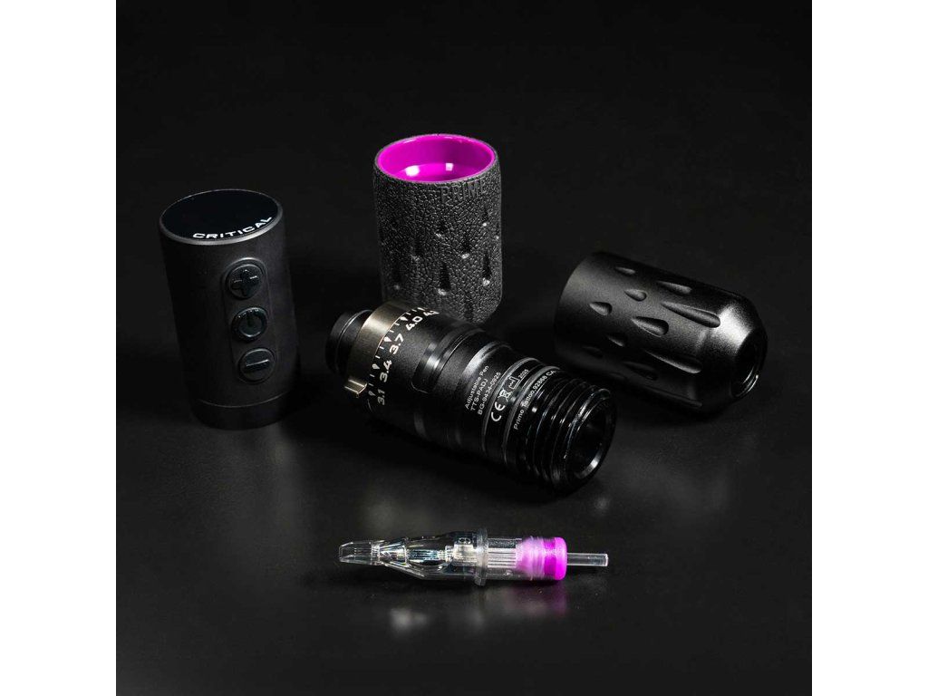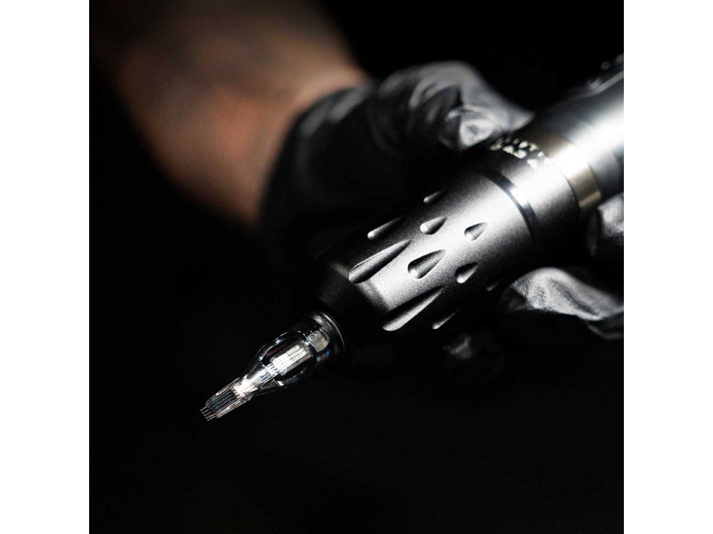 De Prime instelbare pen, complete set is een draadloze machine met een instelbare slag van 3,1 tot 4,6 mm. In één apparaat dekt het lijnen, schaduwen, vullingen en stippling zonder dat de machine tijdens het werk hoeft te worden verwisseld.