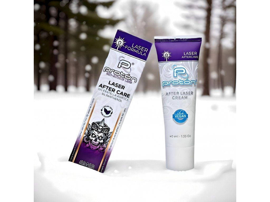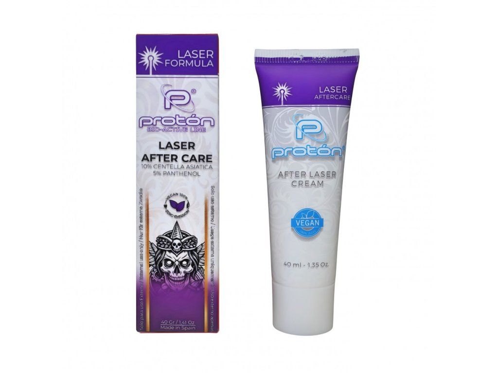 Proton Tattoo Laser After Care is een professionele regeneratieve crème, ontworpen voor de nazorg van de huid na laserverwijdering van tatoeages. In tegenstelling tot gewone producten voor tatoeageverzorging, is dit product ontwikkeld om de huid die belast is door warmte en irritatie na laserbehandelingen intensief te kalmeren, regenereren en beschermen.