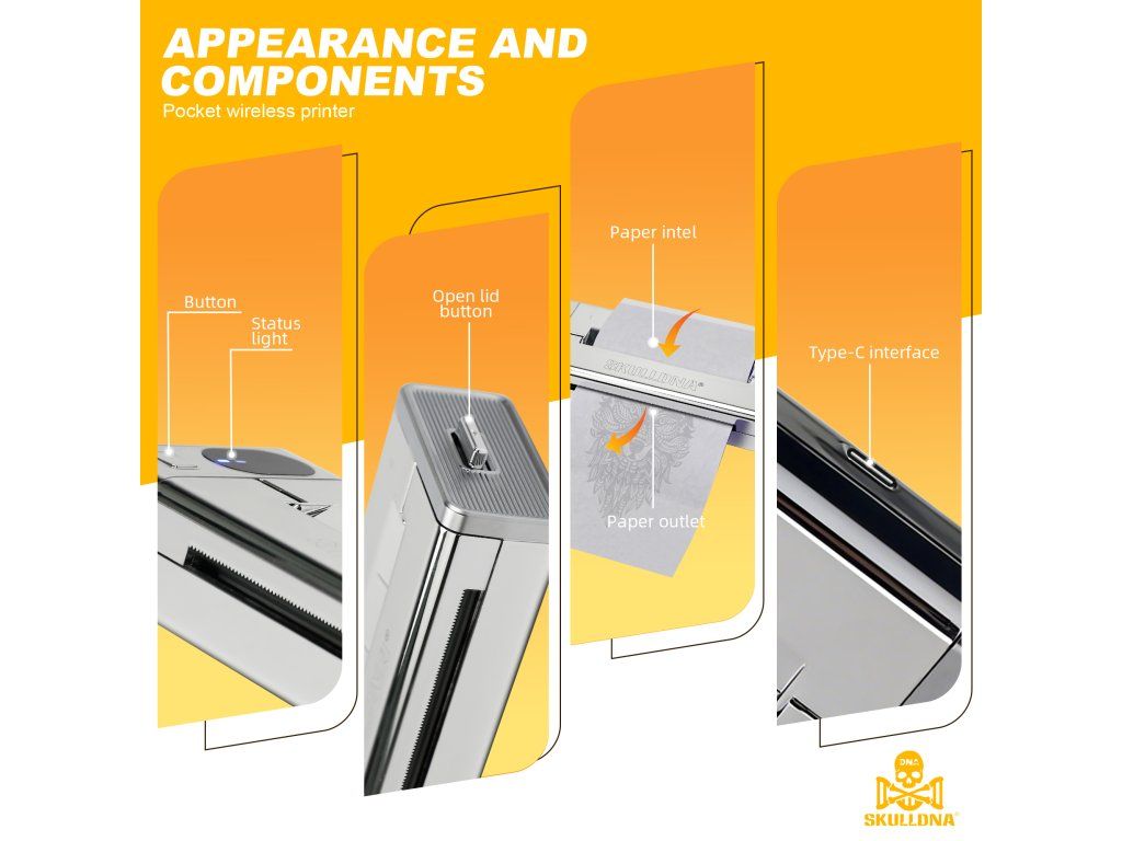 SKULLDNA M6 Mini Pocket Wireless Printer - draadloze thermische printer