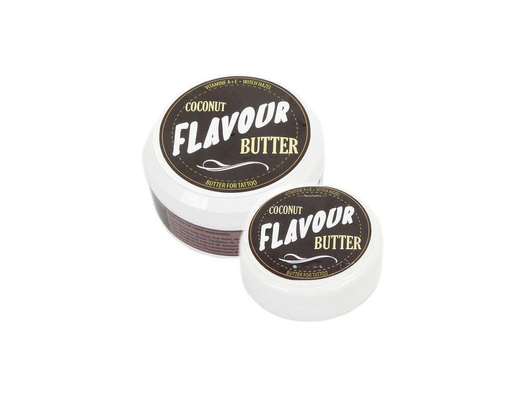 Dankzij de kokosgeur heeft deze tattoo boter ook een kalmerend effect op de zintuigen. Flavour Butter is ideaal voor, tijdens en na het tatoeëren. Aanbrengen op de huid is eenvoudig en ongecompliceerd en het begint onmiddellijk te werken. 100% natuurlijk en biologisch Vegan Ondersteunt de genezing van verse tatoeages Gemaakt van sheaboter Met toverhazelaar en vitaminen C, E, F en Omega 3 + 6 Vermindert roodheid, zwelling en bloedingen De huid blijft functioneel Inhoud: 200 ml