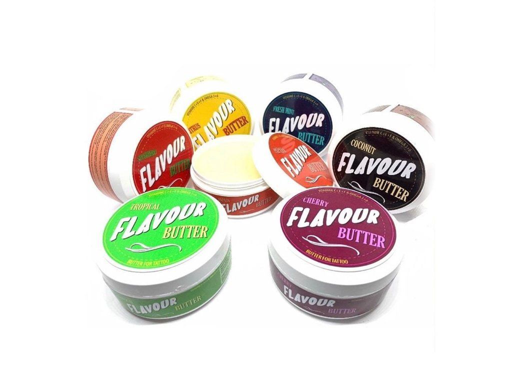 Dankzij de geur van geweldige geuren heeft deze tattoo boter ook een kalmerend effect op de zintuigen. Flavour Butter is ideaal voor, tijdens en na het tatoeëren. Aanbrengen op de huid is eenvoudig en ongecompliceerd en het begint onmiddellijk te werken. 100% natuurlijk en biologisch Vegan Ondersteunt de genezing van verse tatoeages Gemaakt van sheaboter Met toverhazelaar en vitaminen C, E, F en Omega 3 + 6 Vermindert roodheid, zwelling en bloedingen De huid blijft functioneel Inhoud: 200 ml