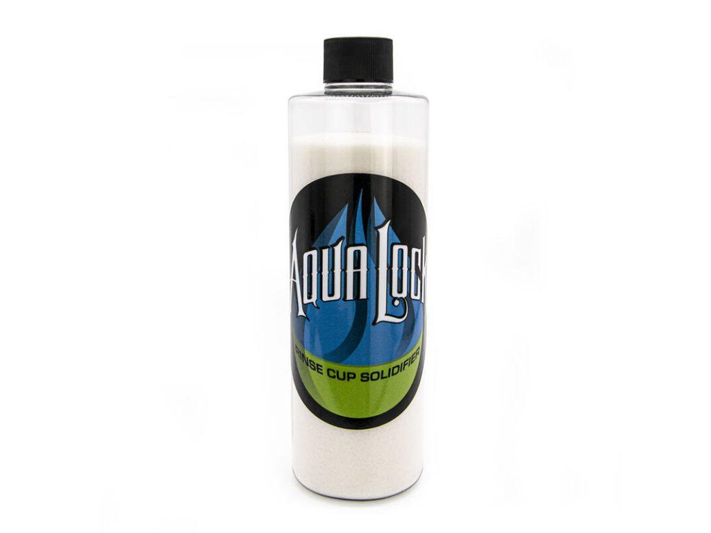 AQUA LOCK Aqua Lock is een polymeerpoeder dat wordt gebruikt om besmette vloeistoffen te stollen in spoelbekers die worden gebruikt bij het tatoeëren. Het doel is om biologisch gevaarlijk afval en kruisbesmetting te minimaliseren. Verkrijgbaar als poeder en individuele oplosbare zakjes. Aqua Lock blijft stevig en vloeit niet uit