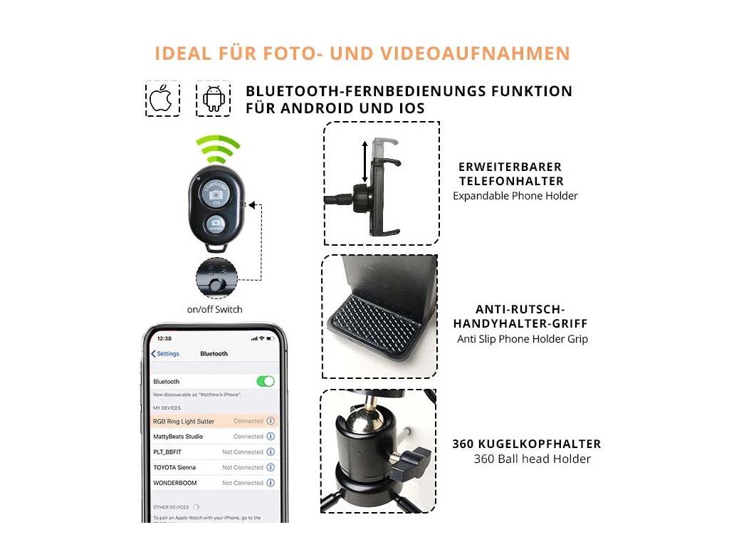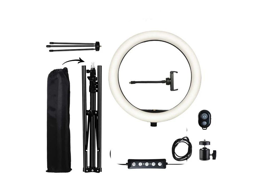 TILT HOEK TOT 45° EN ACCESSOIRES VOOR SOCIALE MEDIA - De SwavGo LED ringlamp is uitgerust met een kogelkopbevestiging waarmee hij 360° kan worden gedraaid. De kantelhoek maakt bovendien tot 45° mogelijk. De fotoset bevat ook een smartphonehouder, een extra tafelstatief en een Bluetooth-afstandsbediening die kan worden gekoppeld aan uw smartphone om op afstand foto's te maken. Ideaal voor het creëren van content op social media platforms zoals Instagram, TikTok, etc.!
