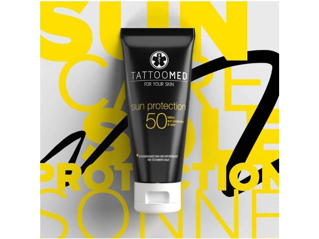 Vóór het zonnebaden (of het nu in een solarium is of buiten) moet de huid worden beschermd met een crème met een geschikte beschermingsfactor. Voor gebieden met getatoeëerde huid die niet door kleding worden bedekt, is bescherming tegen de zon ook in de winter de moeite waard. Met TattooMed Sun Protection 50 crème kunt u uw getatoeëerde huid beschermen en deze aangenaam verzorgen wanneer de zon bijzonder sterk is of wanneer u een dag op het strand of bij een buitenzwembad plant. De kleuren blijven zo helder en de huid is dankzij de snelle opname glad, zacht en aangenaam, niet plakkerig zoals bij veel andere crèmes.