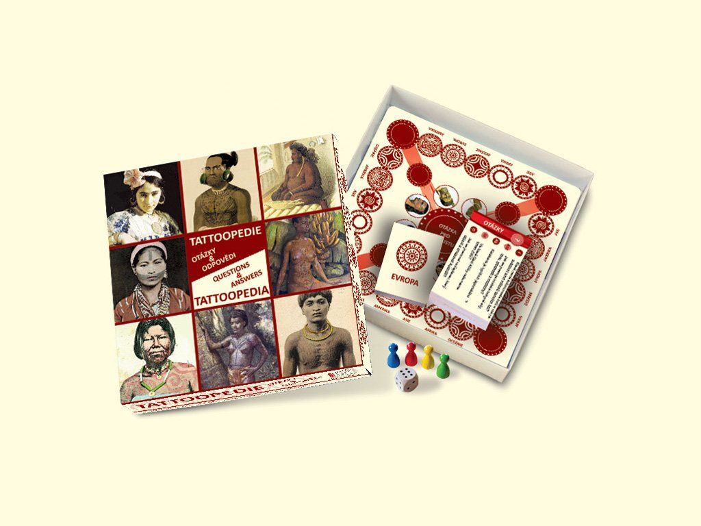 kaarten met vragen en antwoorden, een pion voor elke speler en een dobbelsteen.