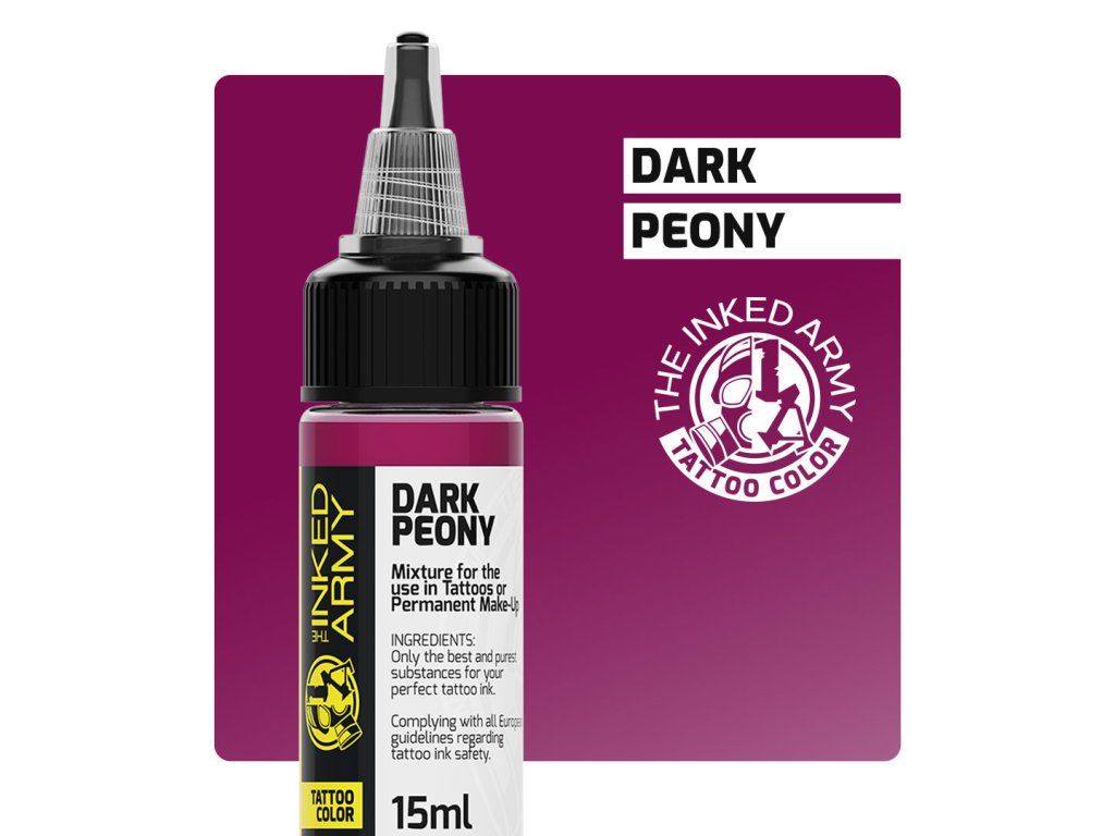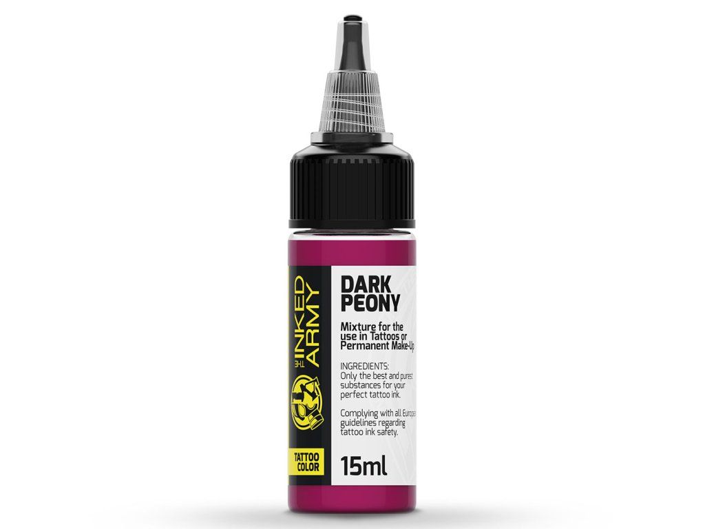 THE INKED ARMY Dark Peony is een diepe roze tint, geïnspireerd door de kleur van een donkere pioenroos. Het biedt een intens resultaat en een stabiele kleurtoon bij zowel laagjes als volledige vullingen.