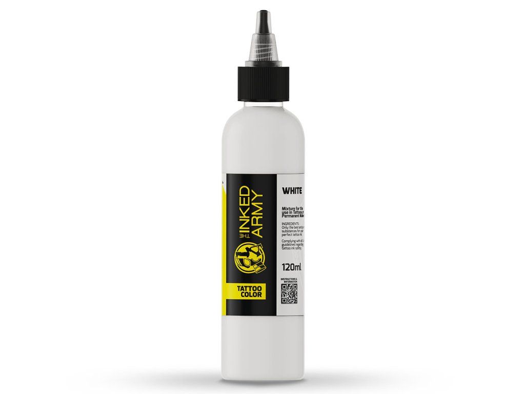 THE INKED ARMY White is een intense witte tattoo-inkt ontworpen voor pure dekking, lichteffecten en het verhelderen van details. Dankzij de gebalanceerde consistentie biedt het een stabiele stroom en een gelijkmatige pigmentafzetting, wat nauwkeurig en gecontroleerd werken mogelijk maakt.