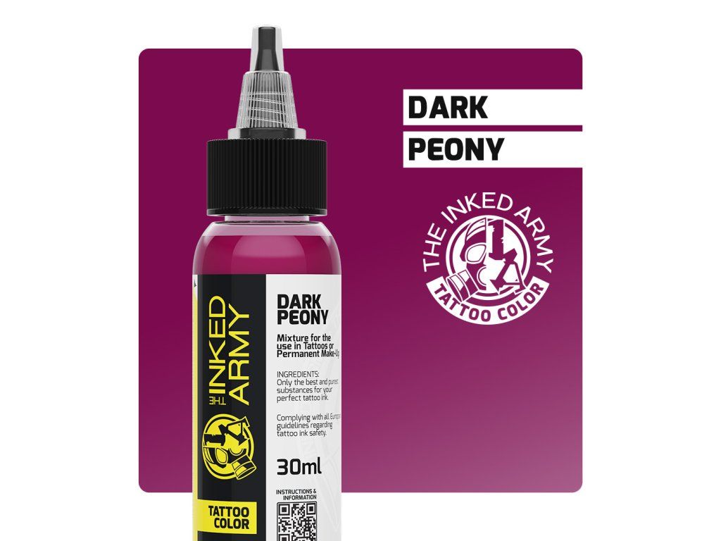 THE INKED ARMY Dark Peony is een diepe roze tint, geïnspireerd door de kleur van een donkere pioenroos. Het biedt een intens resultaat en een stabiele kleurtoon bij zowel laagjes als volledige vullingen.