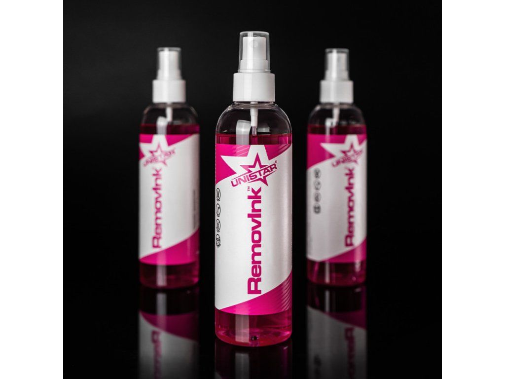 Unistar RemovInk is een product dat speciaal is ontwikkeld om het verwijderen van tatoeagepapier te vergemakkelijken. RemovInk verwijdert effectief alle sporen van stencilpapier en laat de huid schoon en onbeschadigd achter.