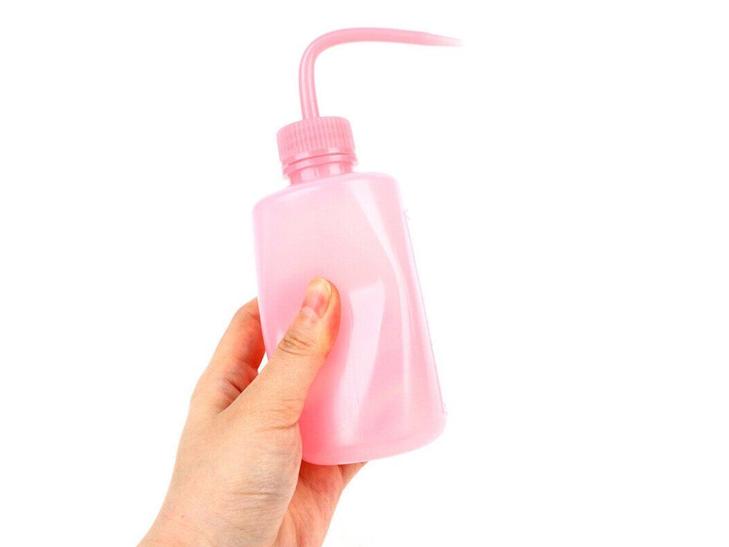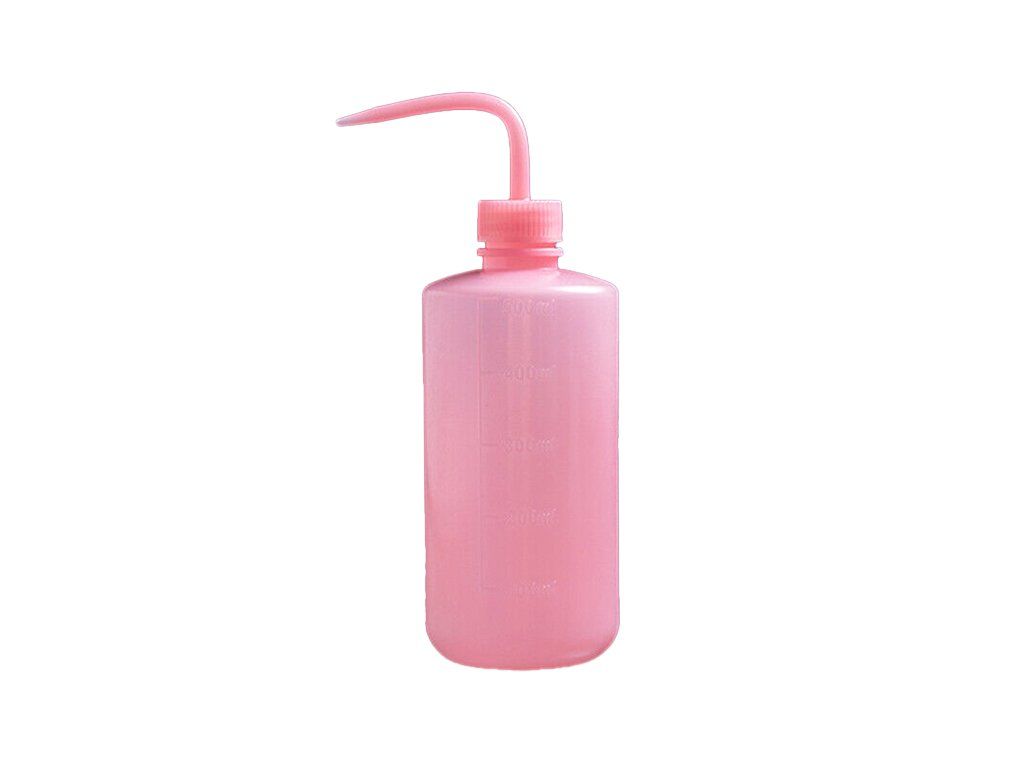 De maatbeker op de fles toont de hoeveelheid vloeistof.