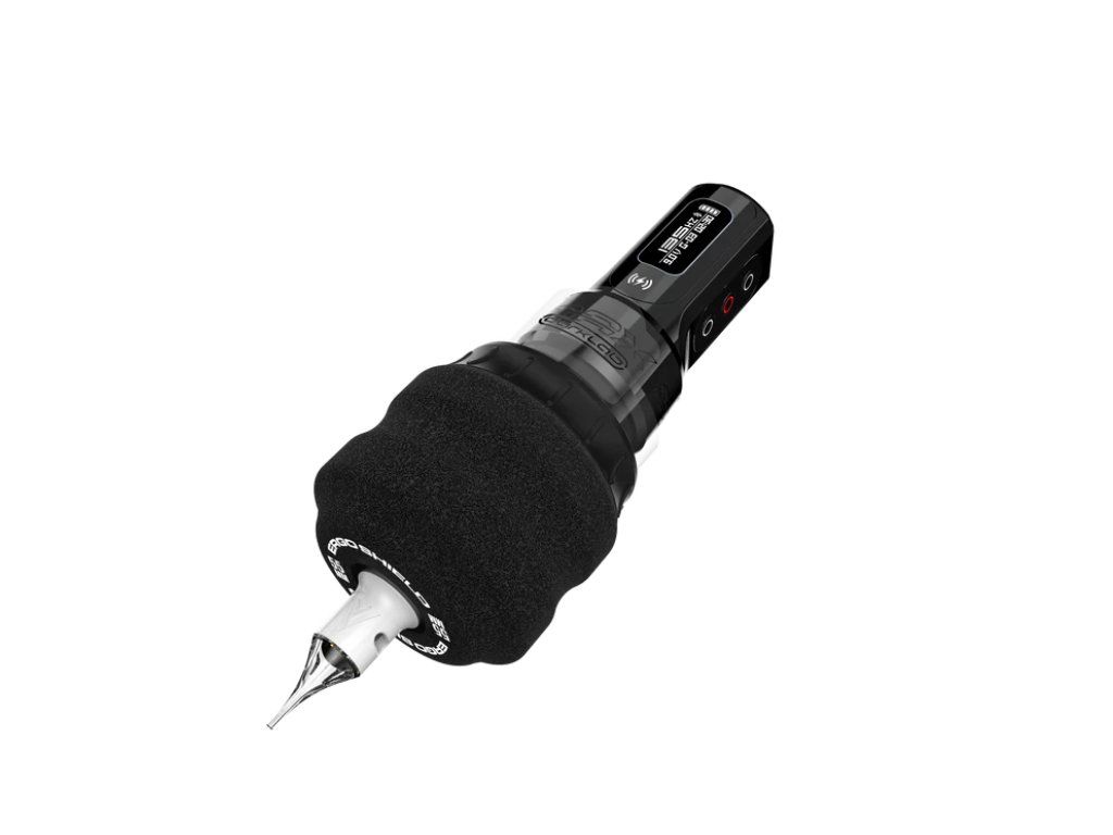 Ergo Shield Grip biedt een naadloos geïntegreerde barrière die uw gehele tattoo-machine omhult en zorgt voor compromisloze hygiëne en veiligheid. Zeg vaarwel tegen tijdrovende en omslachtige processen met zakjes met clips, papieren handdoeken, stoffen banden of geïmproviseerde oplossingen. Het proces is eenvoudig: verwijder de ErgoShield uit de steriele blisterverpakking, vervang de originele grip en zodra de schroefdraden vastklikken, trek de ingebouwde barrière uit door aan de sticker te trekken. Na volledig uitgeschoven te zijn, sluit en zet u het uiteinde van de barrière vast door het plakkerige lipje los te trekken. Het is zo simpel!