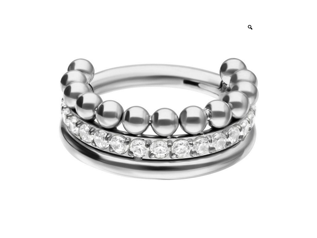 De Triple Bubble Crystal Clicker ring is made of implant-grade titanium Grade 23 (Ti6AL4V ELI ASTM F-136), which is extremely light, strong, and hypoallergenic. The surface is treated with a premium PVD coating, ensuring long-lasting shine and protection against damage.